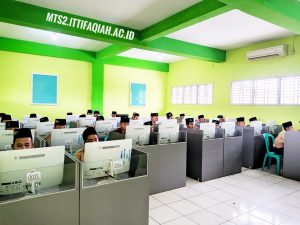 Kepala MTs Al-Ittifaqiah 2 , Ust Huzairi, S.Pd.I didampingi waka 1 Ust Muhammad Iqbal SN, M.Pd.I waka 2 Ust Ardeni, S.Pd.I waka 3 Ust H. Darsi Ahmadan, S.Th.I, M.E.Sy menyampaikan hal ini ” “Alhamdulillah, hari pertama Ujian berjalan dengan baik dan lancar, mudah-mudahan kondisi ini bertahan sampai 6 hari berikutnya Ujian UM-BK, Bertempat di kampus D , sebanyak 84 unit komputer disebar pada 2 ruangan terbagi dalam 3 sesi dan 2 mapel perhari.