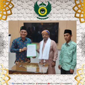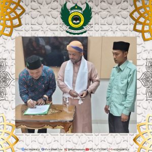 Penandatangan MoU Kepala Madrasah Tsanawiyah Al-Ittifaqiah 2 Ustadz Huzairi, S.Pd.I dan Profesor. Dr. Maher Saeed Awadh Pendiri Yayasan Universitas Al-Qur’an Al-Karim Cabang Mukalla Yaman