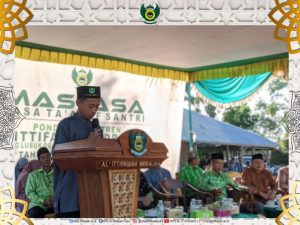 Ketua Yayasan Islam Al-Ittifaqiah K.H. JONI RUSLI, S.Pd.I. Menyampaikan “Anandaku Semua mau jadi pemimpin, siap jadi pemimpin, semua santri serentak menjawab siap!!! modalnya ada 4