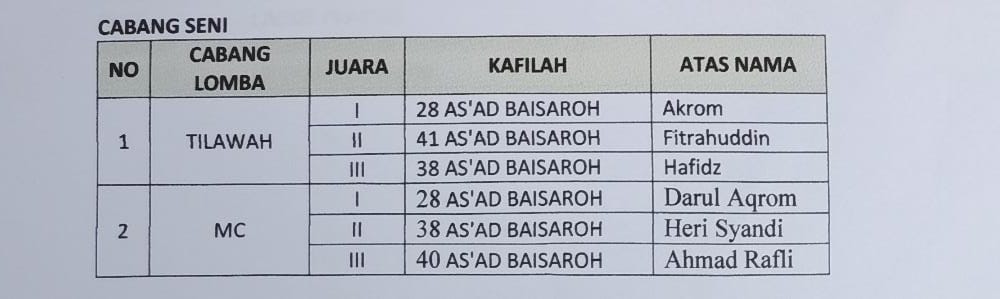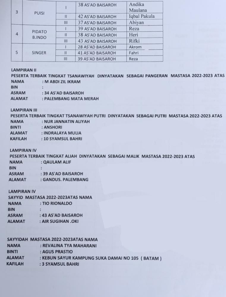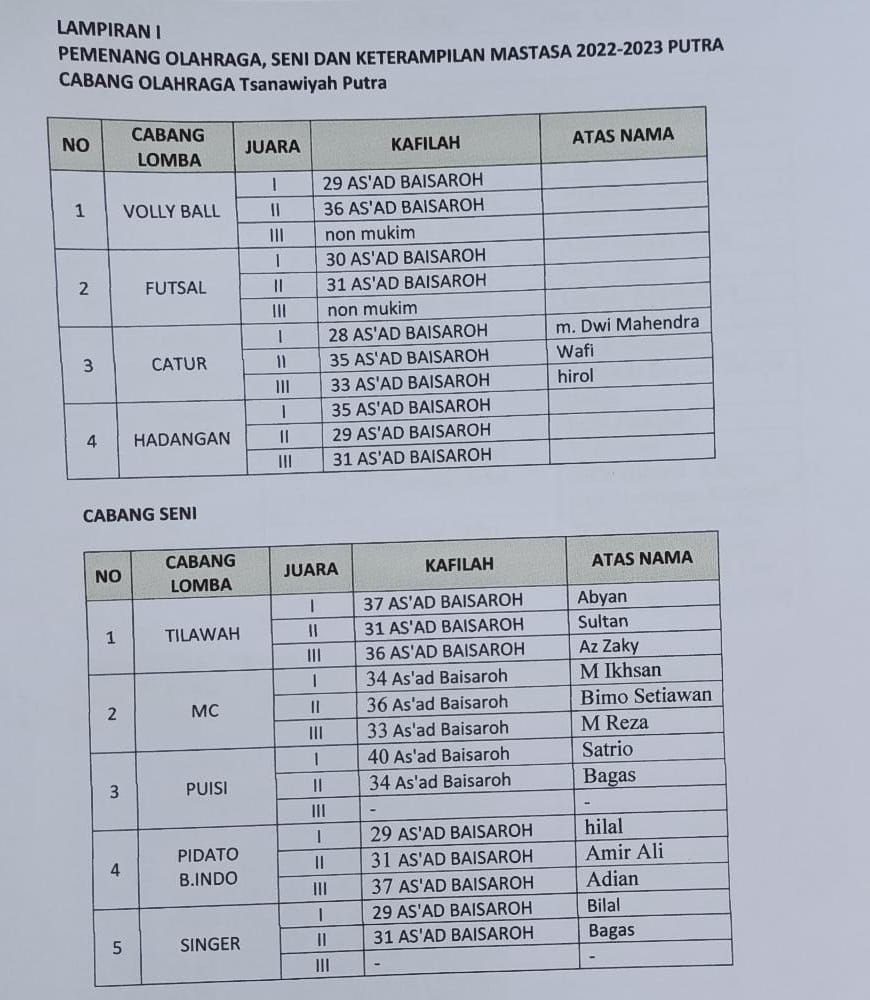 Berikut Lampiran Juara Juara Mastasa 2022-2023
